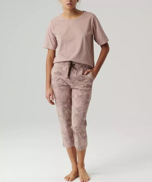 Női pizsama - rövid ujjú - félkör alakú nyakkivágás - mintás nadrág - 3/4 hosszúság - kényelmes zsebek - öv húzózsinórral a derékbőség beállításához Összetétel: 100% pamut