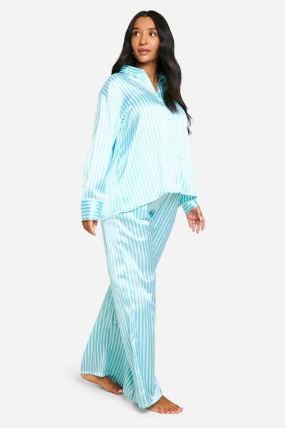 Boohoo Klasszikus Kismama Pizsama Csíkos Ing Gombos Nadrág Gumis Boohoo 38