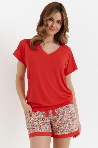 Cana Tiny női bambuszpizsma, piros, virágos, L