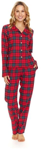 DN Nightwear Simona női flanelpizsama, piros, kockás, L