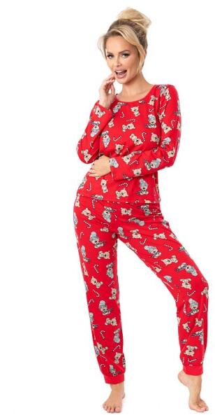 Donna Bear long karácsonyi pamut pizsama, piros, M