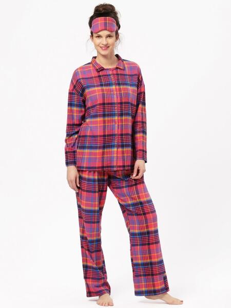Klasszikus női pizsama flanelből - pamut w kratkę - blúz hosszú ujjal - gallérral, gombos - teljes hosszú alsóval - egyszerű szárvágás - csípőn wygodna kieszenie - w pasie wygodna gumka obszyta bawełną Skład: 100% pamut