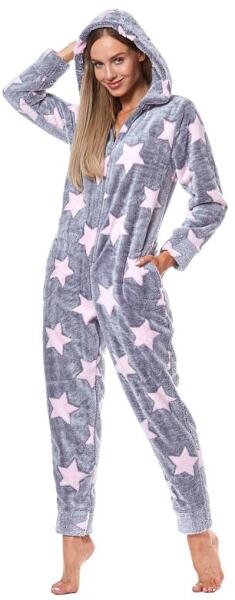 L&L Ellie női soft kezeslábas, szürke, csillagos, M