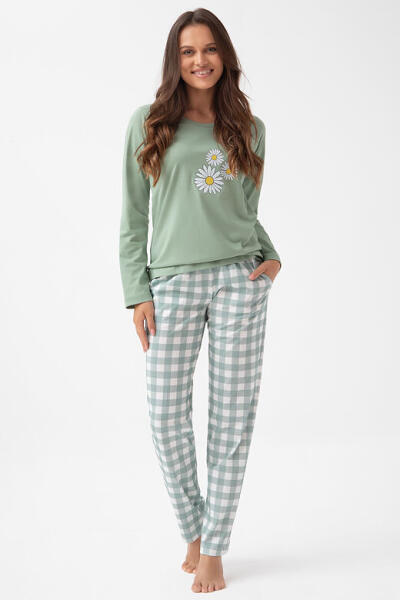 Luna Saskia hosszú női pizsama, zöld, XXL