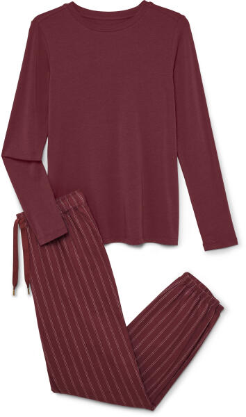 Flanel pizsama Szín: Bordó felsőrész Fehér csíkos, bordó felsőrész Anyag: Felsőrész: 48% pamut (támogatja a Cotton made in Africa kezdeményezést), 47% modál, 5% elasztán Nadrág: 100% pamut (támogatja a Cotton made in Africa kezdeményezést) Pizsama puha pamut-modál anyagkeverékből készült felsőrésszel – puha pamutflanel nadrággalNadrág rugalmas derékpánttal és megkötővelA felsőrész tartós és rendkívül mosásálló, kiváló minőségű, márkás elasztánnalEz a pizsama támogatja a termelőket.