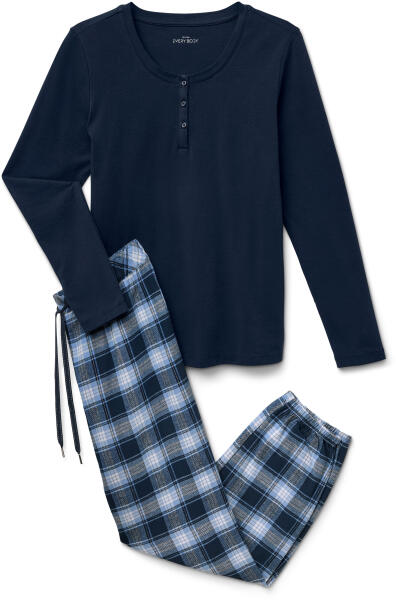 Női flanel pizsama, sötétkék Szín: Sötétkék felső. Kék kockás nadrág Anyag: Felsőrész: 48% pamut (támogatja a Cotton made in Africa kezdeményezést), 47% modál, 5% elasztán. Nadrág: 100% pamut (támogatja a Cotton made in Africa kezdeményezést) Méretek: Felsőrész teljes hossza: kb. 64,5 cm (M 40/42-es méret). Nadrág belső szárhossza: kb. 76 cm Felsőrész puha pamut-modál anyagkeverékből – nadrág puha pamutflanelbőlFelsőrész gomboláspánttalNadrág rugalmas derékpánttal és megkötővelRugalmas végű nadrágszárakA felsőrész tartós és rendkívül mosásálló, kiváló minőségű, márkás elasztánnalEz a pizsama támogatja a termelőket.
