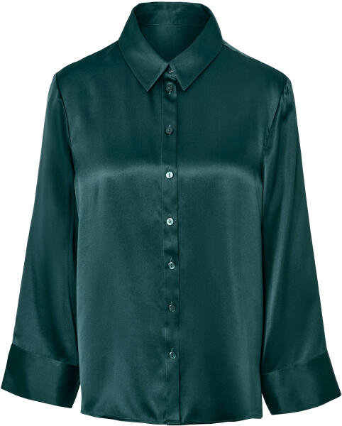Női selyem pizsamafelső, sötétzöld Szín: Sötétzöld Anyag: 100% selyem Méretek: Teljes hossz: kb. 68 cm (40-es méret) Gallérral és végigfutó gomboláspánttalOldalhasítékokEz a pizsamafelső különböző nadrágokkal kombinálható