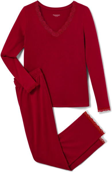 Tchibo - Pizsama csipkerátéttel - nő - méret M 40/42 - piros - tchibo - 9 995 Ft